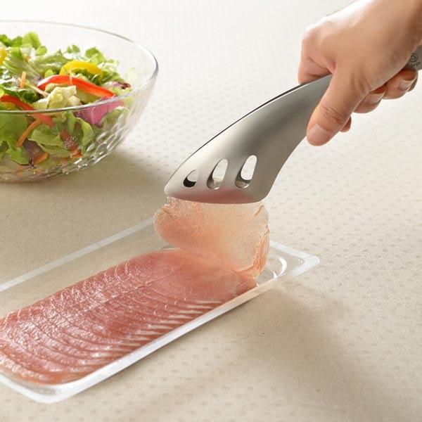刃先がピタッと合わさるので、ちぎれやすい食材もしっかりつかめます。