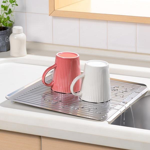 傾斜がついているので、洗い物の水がシンクに流れやすい構造です。
