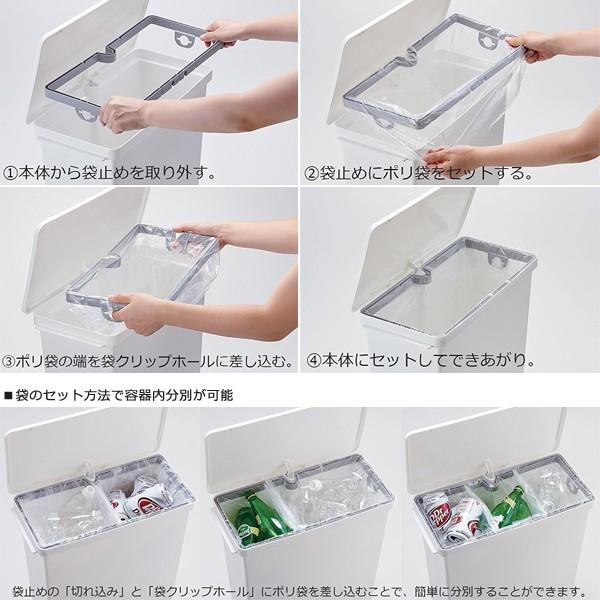 内部は、袋止めの「切れ込み」と「袋クリップホール」にポリ袋を差し込むことで、分別もできる構造です。