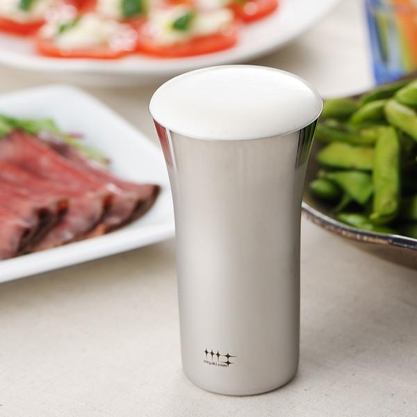 ビールを注げば美味しさを引き出すクリーミーな泡、ハイボールなどの炭酸でも細やかな気泡ができるように、内面がミラー仕上げとヘアラインのコンビネーションで仕上がっています。