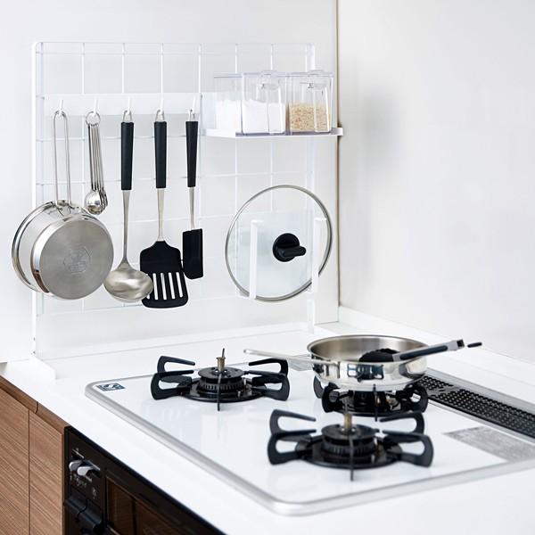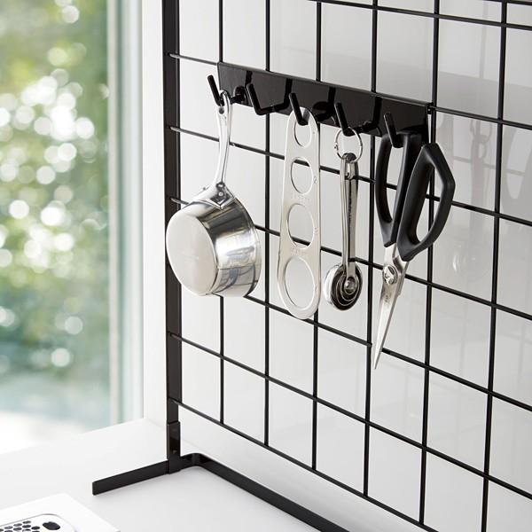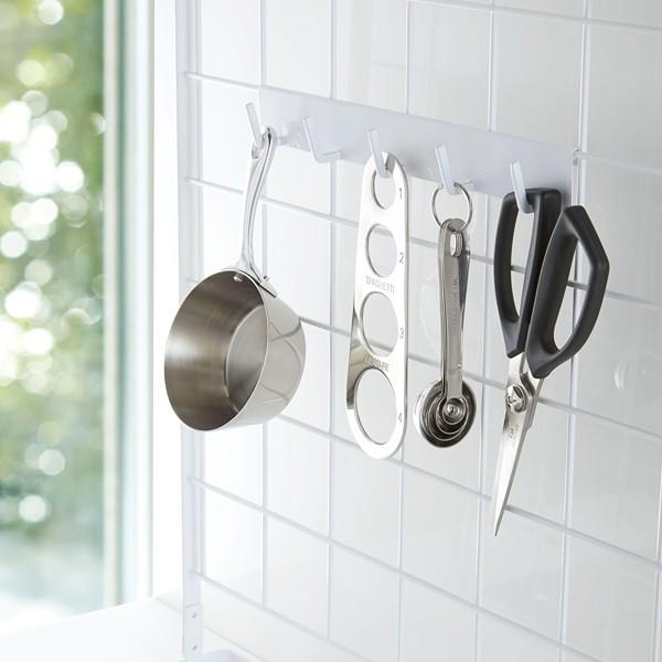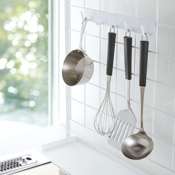 よく使うお玉やフライ返し、計量スプーン、キッチンバサミなどのキッチンツールやミトンなどを掛けて収納できます。