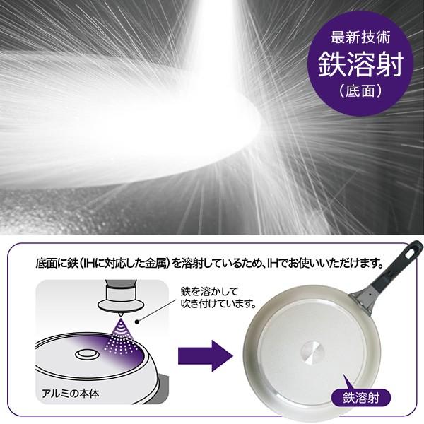 アルミ鋳物のフライパンは通常はIHでは使用不可ですが、最新技術で「鉄」を底面に溶射することで、IH対応を実現しました!