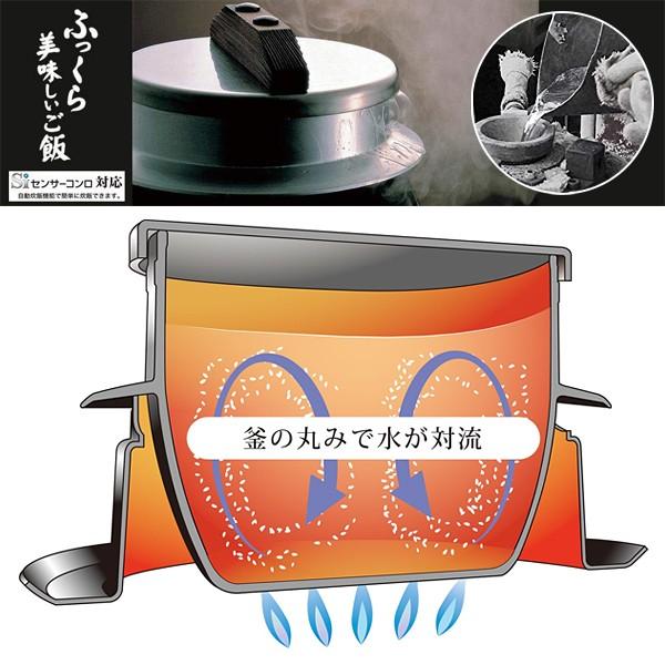 釜の持つ丸みのある形は、加熱した時に理想的な対流を起こし、ご飯を美味しく仕上げます。