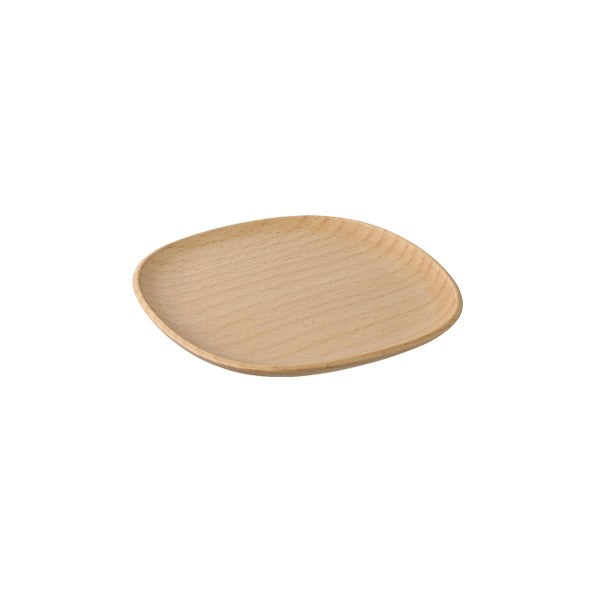 無垢の木のコースターは温もりがあり、ゆるやかなカーブを描くフォルムと薄い縁の仕上げが特徴的。