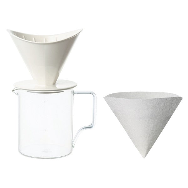 大きなカーブを描いた縁のシルエットが特徴的なブリューワーは、ペーパーフィルターの取り外しがしやすい設計。