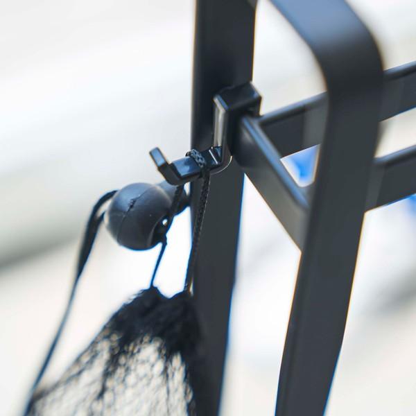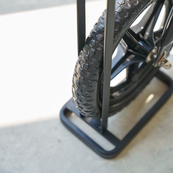 スタンドがなく置き場に困りがちなキッズバイクを、自転車のように立てて収納できるスタンド。