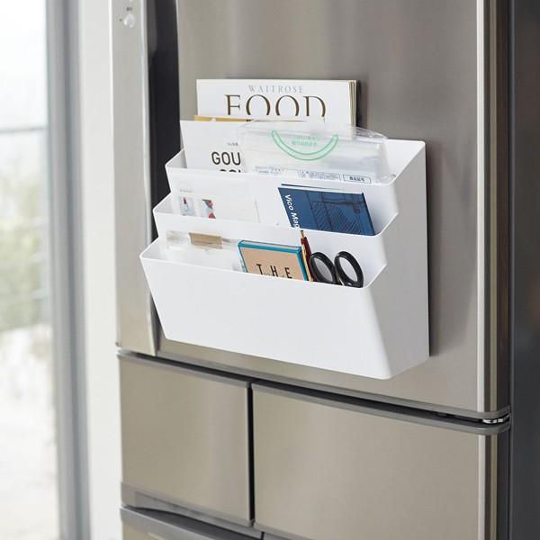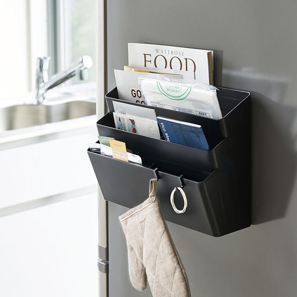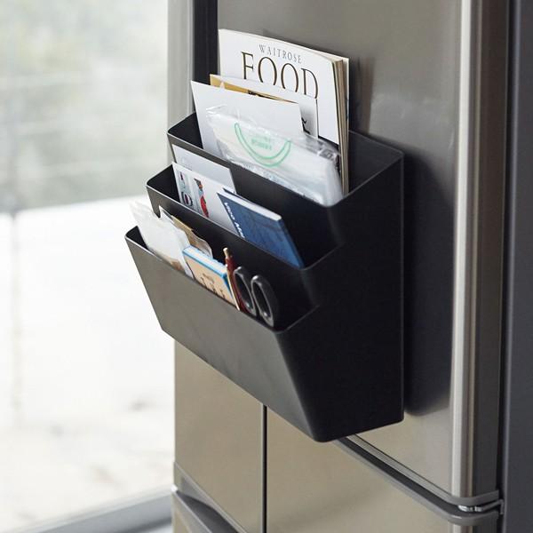 マグネットで冷蔵庫の扉や側面に貼り付けるだけで設置簡単な収納ポケット。