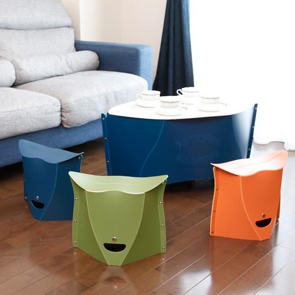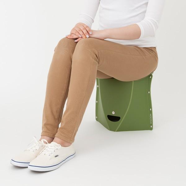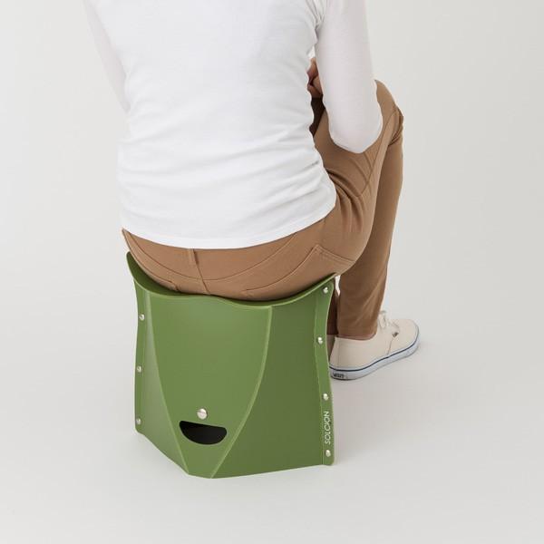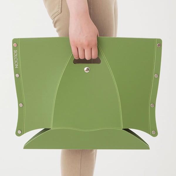 開いて押すだけのワンステップで簡単に組み立てができる折りたたみイス。