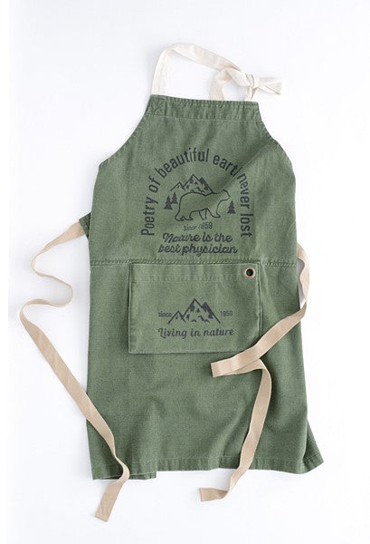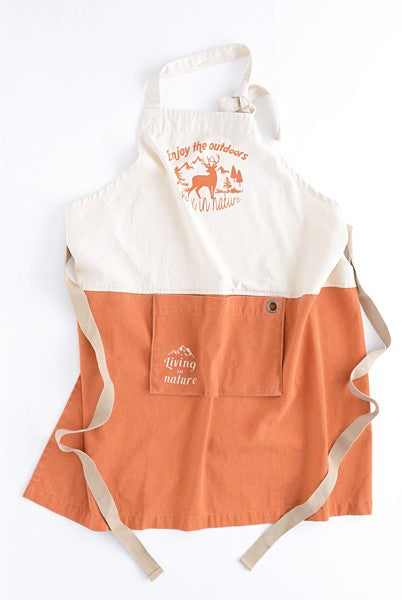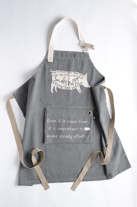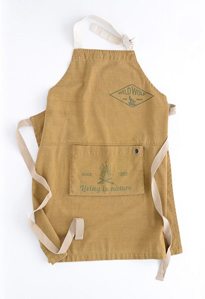 綿100%のしっかりとした生地でできたユニセックスなデザインのエプロン。