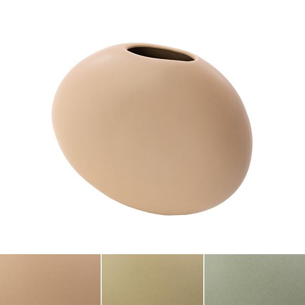 平たく、まん丸ではないアシンメトリーな形が遊び心をくすぐるフラワーベースです。