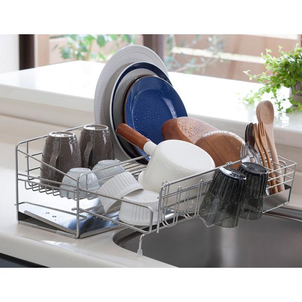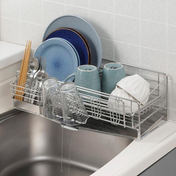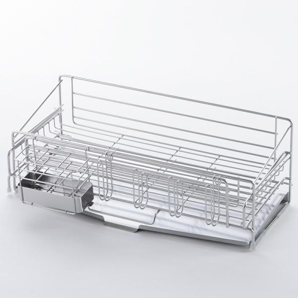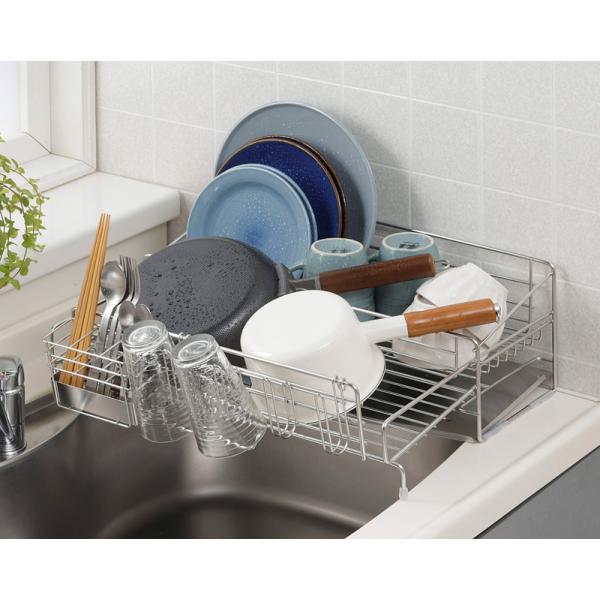 ・バスケットが2つあるので割れやすい食器とフライパン、鍋、ボールなどを分けて水切りしたい時に便利です。