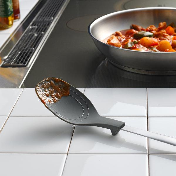 ・先端が浮くのでテーブルが汚れず、置き場に困らない調理スプーン