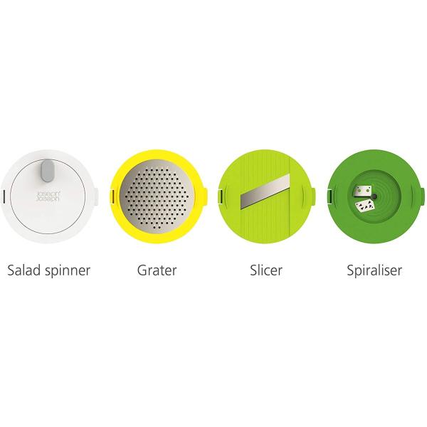 ・サラダスピナー、ベジヌードルカッター、スライサー、グレーターの4つの機能を兼ね備えた便利グッズです。