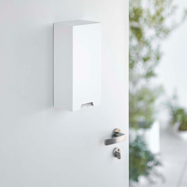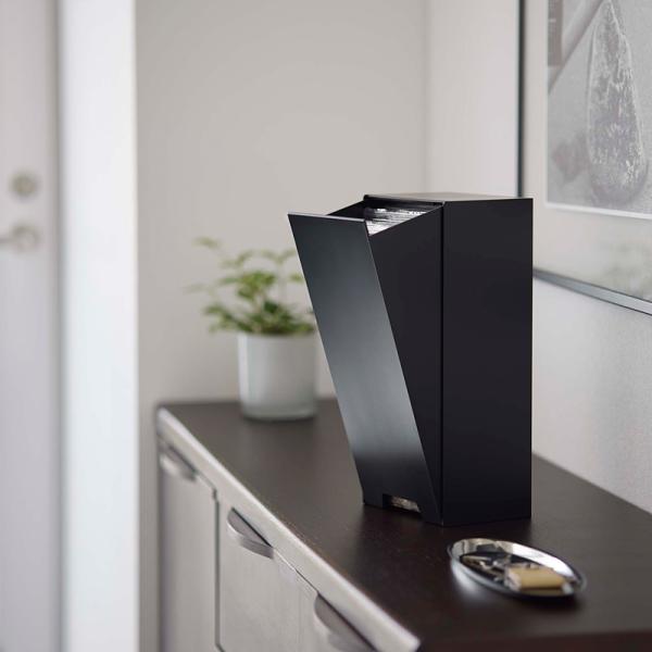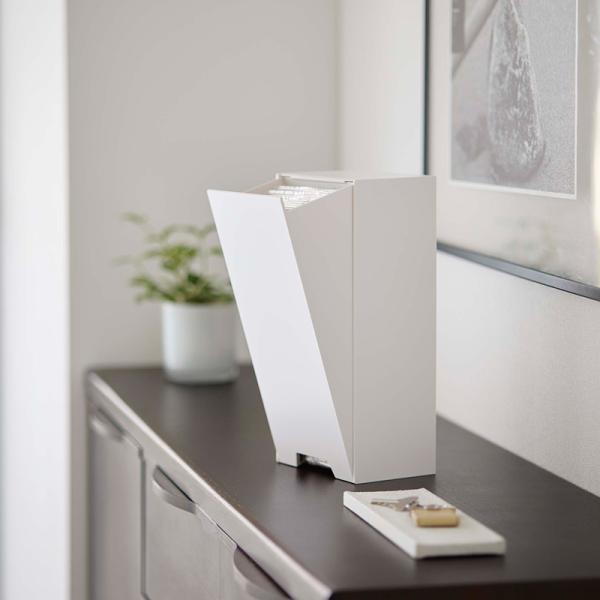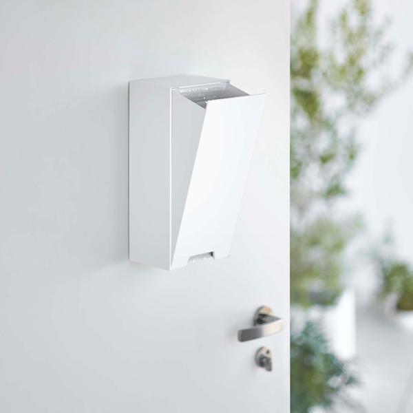 ・マスクの収納部はフラップ式で、斜めに開口するので、磁石が付かない場合でも、下駄箱やチェストなどに置いてお使いいただけます。