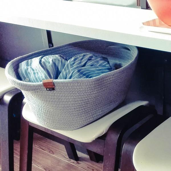 天然素材のカゴだと、ストールやブランケットなど布製のものをいれると引っ掛けてほつれるということもありますが、コットンなので、安心して収納することが出来ます。