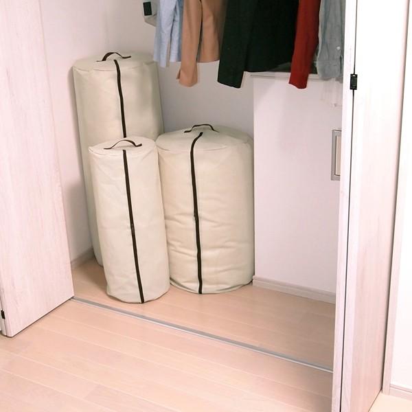 丸めてコンパクトにすれば、押入れの天袋や、クローゼットのハンガーの上の棚にも、収納しやすくなります。