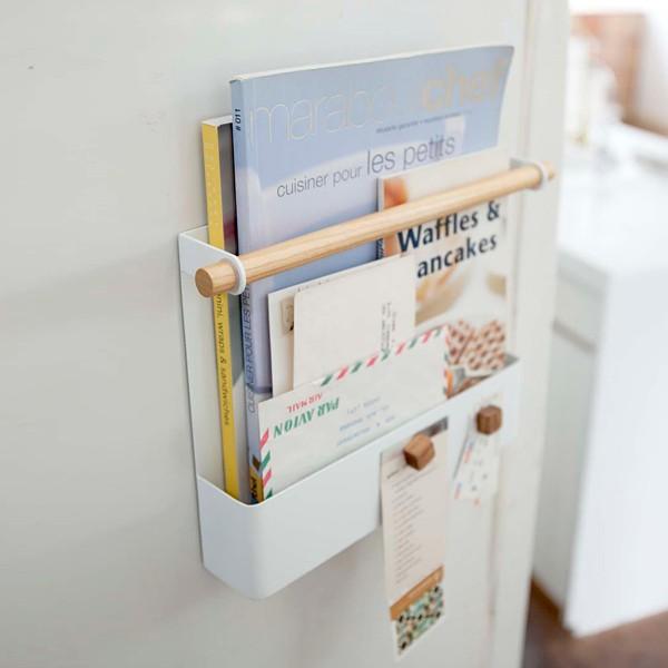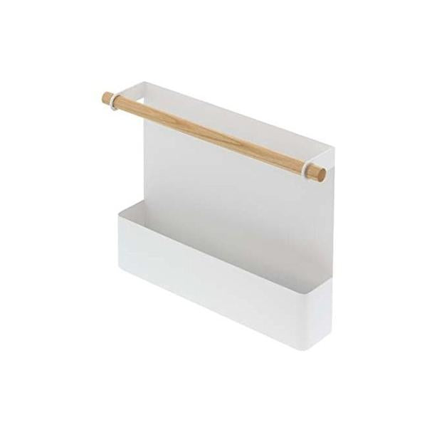 ホワイトのスチールと、天然木を組み合わせたマグネットキッチンペーパーホルダー。ナチュラルな木目と風合いのあるスチールが上質な佇まいを演出します。