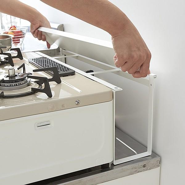 油はねや調理汚れをしっかりガードしてくれるコンロ奥隙間ラックです。