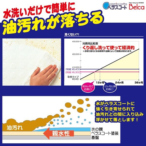 親水性にも優れており、水がベラスコートに強く引き寄せられ、油との間に入り込み、浮かせて落とします。