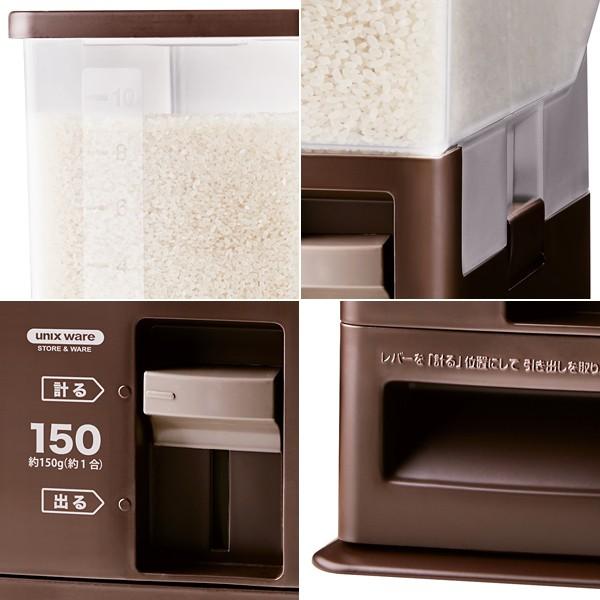 計量カップがなくても、1回のレバー操作で約1合(約150g)を計れ、お米が出てくる引出し部分には、約900g(6合)まで溜めることができます。