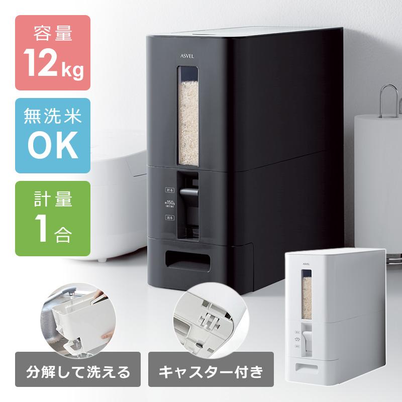 米びつ 10kg用 おしゃれ 黒 洗える 米櫃 スリム 計量 キャスター コンパクト 収納 ストッカー 計れる 無洗米 おすすめ 残量 見える 窓 ホワイト 白 ブラック 計量 S 12kg 1合計量 キッチン用品 キッチン収納 ライスストッカー ライスボックス お洒落 インテリア 映える かっこいい レンジ台 置ける こめびつ お米 容器 保存 オススメ 人気 国内 日本 メーカー品 アスベル ASVEL